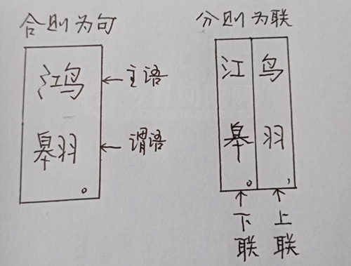 “鳥羽”仄仄,偏正結構,可視為上聯(lián);“江皋”平平,偏正結構,可視為下聯(lián)。