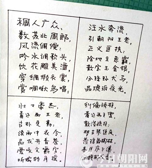 稠人廣眾,數(shù)蘇北周郎,風(fēng)流倜儻,吟水調(diào)歌頭,飲花雕美酒,穿綢緞衣裳,賞啁啾鳥唱。