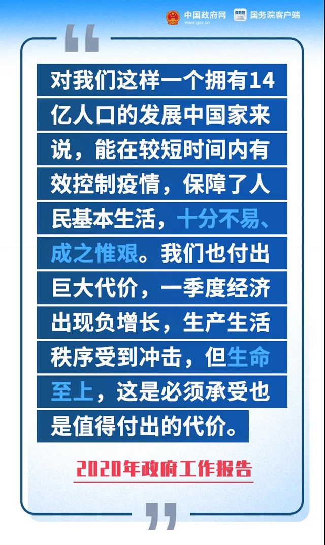 摘要:對(duì)我們這樣一個(gè)擁有14億人口的發(fā)展中國家來說,能在較短時(shí)間內(nèi)有效控制疫情,保障了人民基本生活,十分不易、成之惟艱。我們也付出巨大代價(jià),一季度經(jīng)濟(jì)出現(xiàn)負(fù)增長(zhǎng),生產(chǎn)生活秩序受到?jīng)_擊,但生命至上,這是必須承受也是值得付出的代價(jià)。