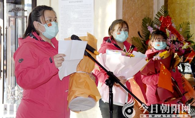 市二院許穎代表醫(yī)療隊(duì)發(fā)言。她說:“在黨中央的號(hào)召下,在市委、市政府的統(tǒng)一部署和市衛(wèi)健委及醫(yī)院的具體安排下,2月2日,我們帶著朝陽340萬父老鄉(xiāng)親的情誼奔赴武漢,投入到這場(chǎng)沒有硝煙的戰(zhàn)爭(zhēng)中。經(jīng)過55天的奮戰(zhàn),我們圓滿完成了馳援任務(wù),平安凱旋。在此期間,我們與武漢人民結(jié)下了深厚的友誼,同時(shí)也時(shí)刻牢記著領(lǐng)導(dǎo)和親人們的囑托,將朝陽人民堅(jiān)強(qiáng)、樸實(shí)、勇敢、擔(dān)當(dāng)?shù)木窳粼诹宋錆h。”