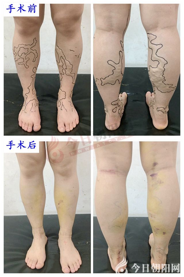 患者陳女士,10月26日因“雙側(cè)大隱靜脈曲張”住進(jìn)了市二院血管甲乳外科病房,這位年輕患者雙下肢大范圍靜脈曲張已經(jīng)有10年了,曾經(jīng)在外地做過“硬化劑注射”后很快復(fù)發(fā),由于顧慮傳統(tǒng)手術(shù)的刀口不美觀而遲遲沒有進(jìn)一步治療,近期曲張靜脈愈發(fā)增多、增粗不得不就醫(yī)。醫(yī)生考慮到患者對于手術(shù)有微創(chuàng)和美觀的要求,制定了“射頻消融+透光動力旋切”的手術(shù)方案。10月28日手術(shù)順利實(shí)施,歷時1個半小時,雙下肢共5處創(chuàng)口,最大約4mm、最小僅2mm。術(shù)后第一天,患者即離床自由活動。術(shù)后第三天換藥,恢復(fù)良好滿意出院。