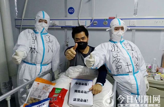 2月26日,邊凌護(hù)士長帶領(lǐng)曹琳護(hù)士進(jìn)病房開展暖心服務(wù),了解患者需求,監(jiān)督護(hù)理質(zhì)量。她們把家鄉(xiāng)送來的牛奶、奶粉、大棗和核桃?guī)У讲^(qū),為患者發(fā)放。一位護(hù)士出身的阿姨說:“你們穿著厚厚的隔離衣,不吃飯、不喝水地照顧我們,你們辛苦了!你們一定要保護(hù)好自己,走的時(shí)候一個(gè)都不能少。”一位小美女說:“等到身體康復(fù),等到疫情過去,你們一定要來找我,我要帶你們逛逛大武漢。”一位婆婆激動地說:“遼寧的牛奶真好喝,你們這么遠(yuǎn)過來幫助我們,還給我們帶東西,真的謝謝你們!”