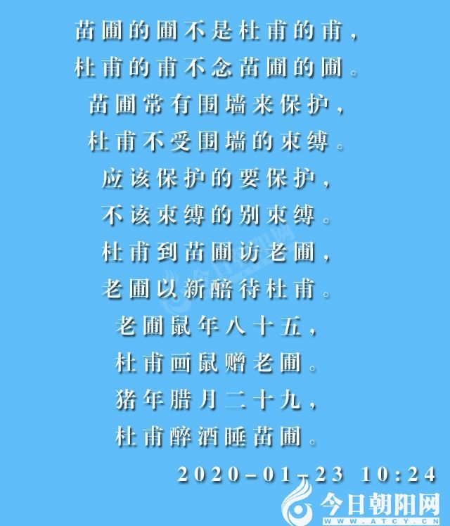 轉(zhuǎn)眼已是臘月二十九,明天就是大年三十了。在這個(gè)普天同慶的日子,作者念念不忘詩(shī)圣杜甫,寫(xiě)了一則關(guān)于杜甫的繞口令。