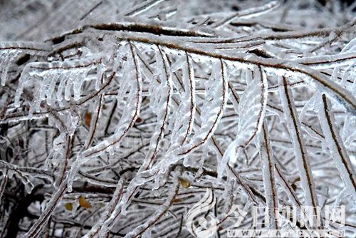 這樣的氣象現(xiàn)象太少見了,打開電腦一陣猛搜。雨后結(jié)冰,晶瑩剔透,壓彎或者壓折樹木是典型的冰雨。冰雨是怎么回事,繼續(xù)看下去:凍雨是初冬或冬末春初時節(jié)一種罕見的氣象現(xiàn)象。由于氣候的原因,地面溫度低,雨水下到地上成冰,構(gòu)成凍雨。