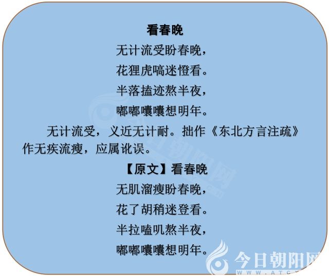 鼠年將至,微信圈里流傳一組東北“風”,頗具東北味。然而,白字較多,不符合“說方寫本”的基本原則,卻能反映方言語音的原貌。興之所至,不揣冒昧,謹據(jù)拙作《東北方言注疏》(白山出版社2016年)做些訂正,有不當之處,恭候佚名作者和大方之家批評指正。祝愿看官諸君鼠年大吉!