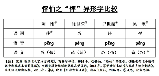 據(jù)此,并借鑒“誠惶誠恐”,拙作《東北方言注疏》將“怦怕”釋為“誠恐。猶言恐怕。”