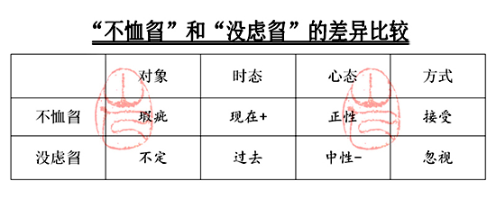 對于自己所見客體之瑕疵,不予憂念,坦然接受,義即“不恤己?”,簡言為“不恤?”。