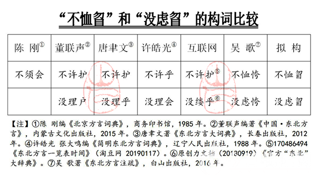 “不恤?”,“沒慮?”,東北暨北京方言辭書多有著錄,但在構(gòu)成上可謂五花八門。