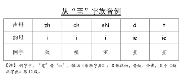 蛭,聲旁為“至”。從“至”字族,聲母囊括“zh/ch/sh”和“d/t”,韻母也有“i”和“ie”。