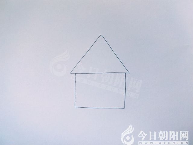 在三角形下方,接著畫(huà)一個(gè)長(zhǎng)方形。