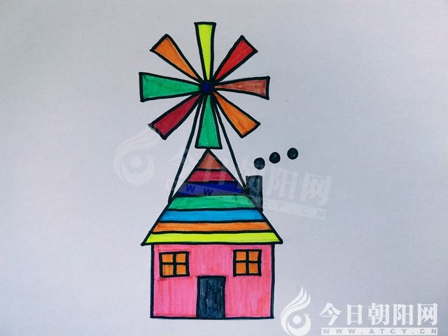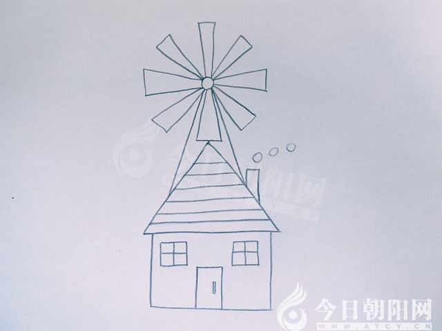 畫(huà)出房頂?shù)娘L(fēng)車。(學(xué)齡小的孩子,這一部分可以省略。)