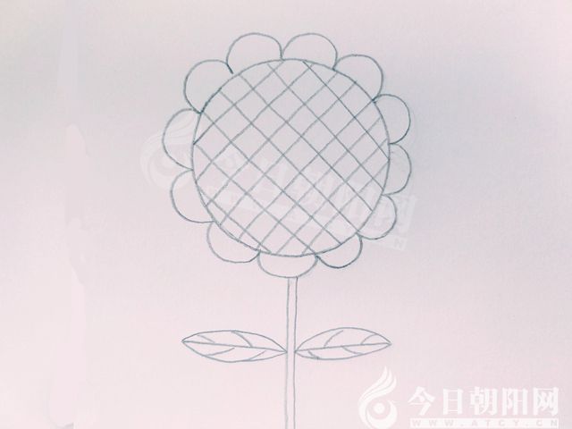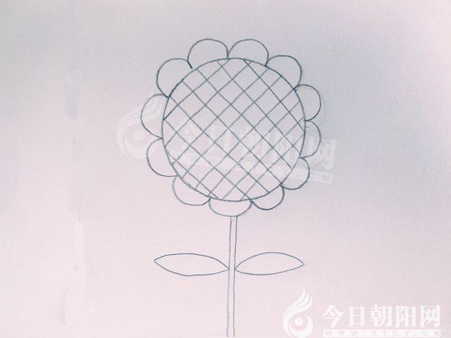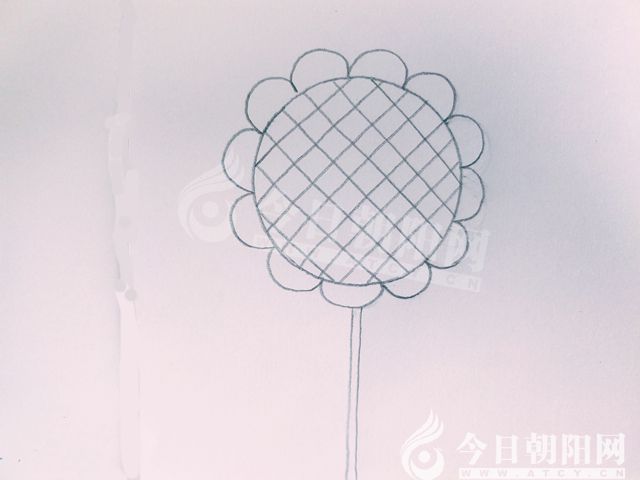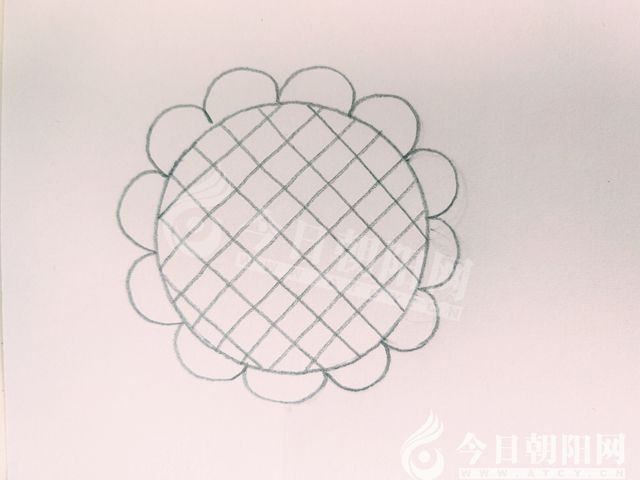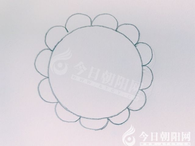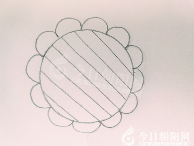 用鉛筆畫一個(gè)圓形,這是向日葵的花盤。