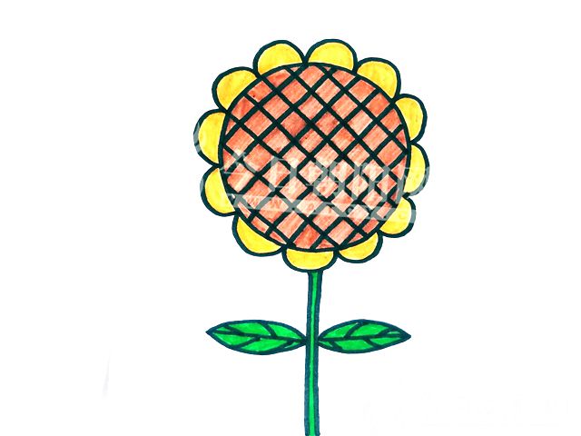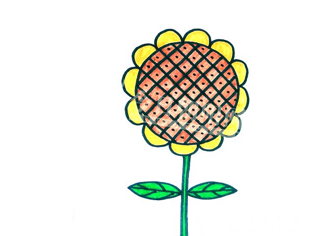 下面,是向日葵的另一種畫法。請小朋友們給它涂上漂亮的顏色吧。