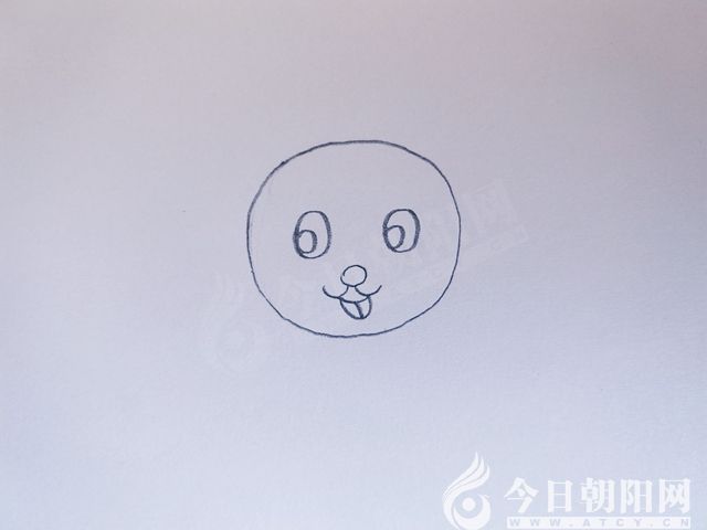 用鉛筆畫一個(gè)圓形,作為小白兔的頭。