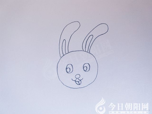 畫小白兔的兩只耳朵。注意兔子的耳朵一定要長(zhǎng)長(zhǎng)的,這是小白兔的特點(diǎn)。