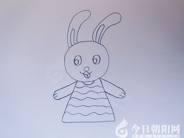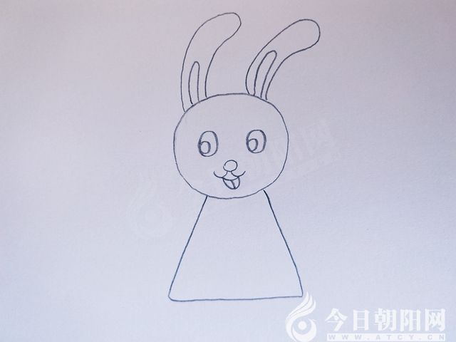 畫小白兔的兩只手,注意用兩條短線區(qū)分出手掌。