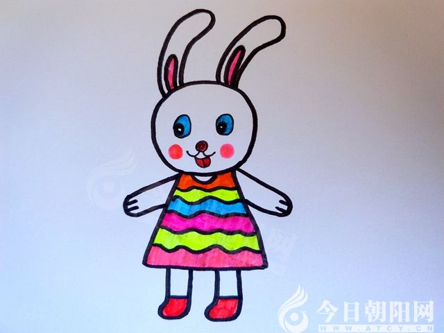 完成涂色。注意給小白兔的臉頰畫上紅暈。