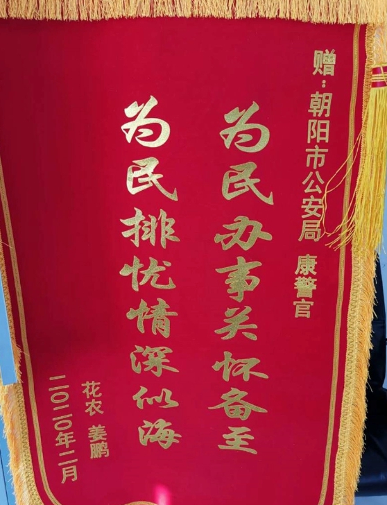該戶花農(nóng)特意制作了一面印有“為民辦事關(guān)懷備至、為民排憂情深似海”的錦旗送給康恩源,以表感謝!