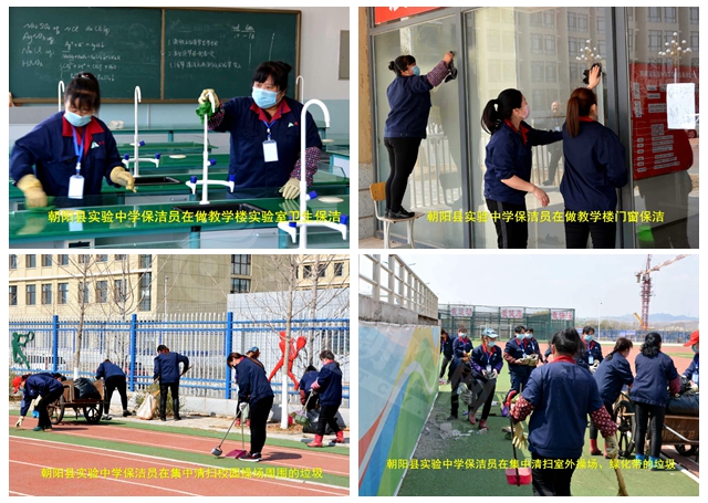 這次開學(xué)前的準備,受新冠肺炎疫情的影響,比往年增加了難度。因為小學(xué)和幼兒園還沒有開學(xué),孩子在家需要有人照顧,有個別保潔員因此不能正常到崗,這些人的工作就需要大家來分擔。距離開學(xué)還有幾天的時間,市、縣組織的檢查已經(jīng)開始,時間緊、任務(wù)重,大家只能在有限的時間內(nèi)超負荷地工作,好多時候,中午都顧不得吃飯,直到把所有的活都干完。4月11日,大家在朝陽縣第一初級中學(xué),從早上七點一直忙到晚上五點半。由于學(xué)校剛建成不久,樓內(nèi)樓外有些地方還在施工中,給保潔工作帶來了一定難度,需要不斷地清理周圍的場地。經(jīng)過一整天的奮戰(zhàn),終于圓滿完成了校方預(yù)定的各項保潔工作。當校領(lǐng)導(dǎo)看到樓宇窗明幾凈,操場靚麗如初,公廁一塵不染,情不自禁地對我們的保潔員豎起了大拇指。