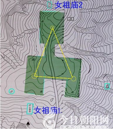 目前,發(fā)現(xiàn)約40座積石冢分布在天地祭壇周圍,這些建在高崗上的積石冢雖然看似沒有規(guī)律,但是若將空間鎖定在天地祭壇之間,就會(huì)發(fā)現(xiàn)“天”“地”之間呈反S形分布的7個(gè)積石冢地點(diǎn)最中心的第5地點(diǎn)與天地祭壇的距離幾乎相等,三者形成一個(gè)等腰三角形。