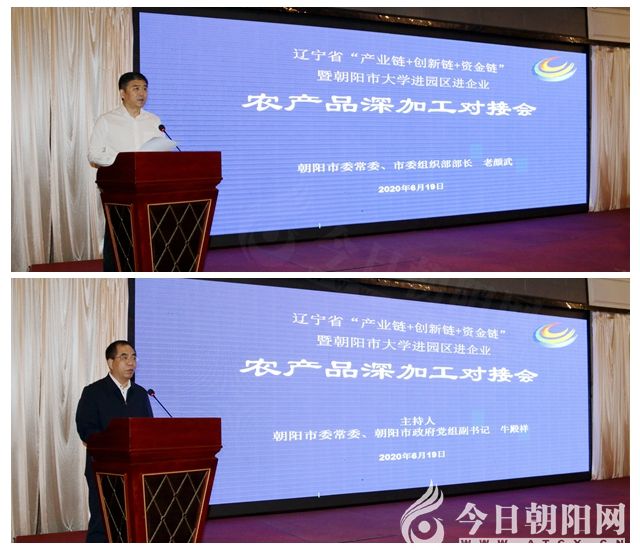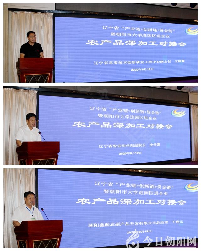 6月19日,三燕古都,千山吐綠,萬(wàn)木崢嶸,一派祥和。上午9時(shí),由遼寧省技術(shù)創(chuàng)新研發(fā)工程中心,中共朝陽(yáng)市委、市政府主辦,市委組織部、市科技局、市農(nóng)業(yè)農(nóng)村局、市金融發(fā)展局承辦的2020年遼寧省“產(chǎn)業(yè)鏈+創(chuàng)新鏈+資金鏈”暨朝陽(yáng)市大學(xué)進(jìn)園區(qū)進(jìn)企業(yè)農(nóng)產(chǎn)品深加工對(duì)接會(huì)在朝陽(yáng)富斯頓酒店熱烈舉行。省、市有關(guān)領(lǐng)導(dǎo)及專(zhuān)家,各縣(市)區(qū)相關(guān)部門(mén)負(fù)責(zé)人,31家高校院所、金融機(jī)構(gòu)及71戶(hù)企業(yè)的負(fù)責(zé)同志參加會(huì)議。