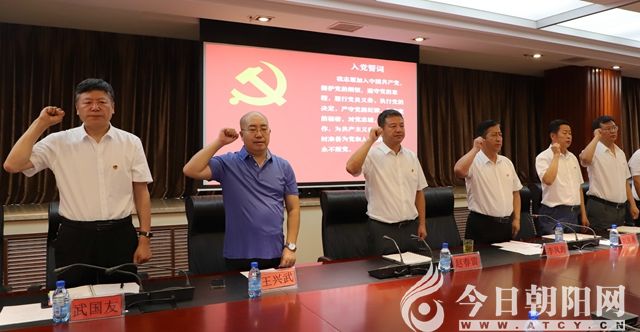 7名新黨員面向黨旗莊嚴(yán)宣誓,老黨員們也重溫了入黨誓詞。新發(fā)展預(yù)備黨員代表馬志超、預(yù)備黨員代表陳世東、支部書記代表武國友分別作了表態(tài)發(fā)言。