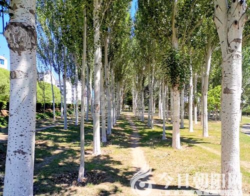 帶著這種疑惑的心理,我沿著小路直奔白楊林。遠眺,一棵棵白楊樹好像被畫家涂上了綠色的顏料,那顏料不規(guī)則地在樹冠的各個角落里渲染著自己的亮麗風彩。