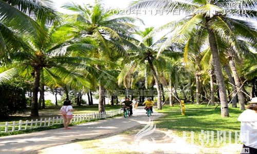 著名旅游景區(qū)三亞灣在三亞市區(qū)綿長的海岸線上,東從鳳凰島開始,西到三亞鳳凰機場附近,全長22公里。在三亞灣路與沙灘之間修有一條大約17公里長的健康步道,為了防風(fēng)固沙,在步道兩旁栽種了數(shù)排高高大大的椰子樹。熱帶綠植花壇可供游人暫短休息娛樂的小廣場分布其中。這里椰林婆娑,陽光斑駁,海風(fēng)徐徐、游人歡歌,真正是椰風(fēng)海韻美不勝收,所以這條防護椰林帶,也叫椰夢長廊,引得無數(shù)游人來此游玩。