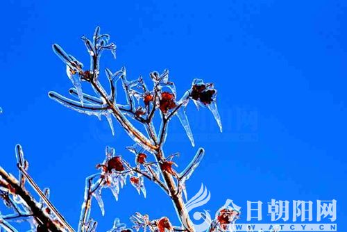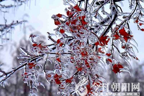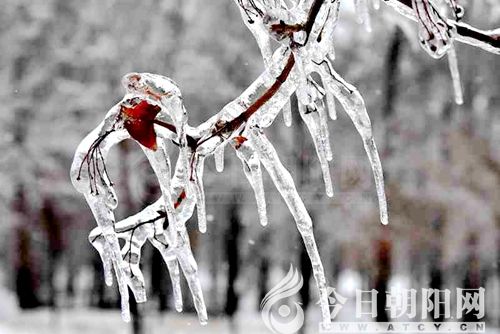 雨滴不斷地打落在這些結(jié)了冰的物體表面時,就慢慢地形成一條條冰柱。太陽出來后,在陽光的照躍下的冰柱閃閃發(fā)亮,分外妖嬈,凍雨給人們增添了秀麗動人的景色。