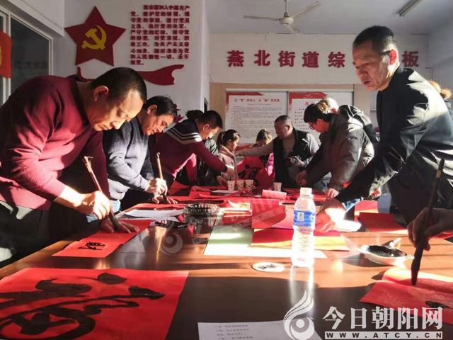 1月8日,遼寧省朝陽(yáng)市文聯(lián)2020年新春“送萬(wàn)福進(jìn)萬(wàn)家”系列活動(dòng),在雙塔區(qū)燕北街道燕河社區(qū)黨群工作室拉開(kāi)序幕。朝陽(yáng)市文聯(lián)主席王文書(shū)帶領(lǐng)全市書(shū)法家一行10余人來(lái)到社區(qū),為轄區(qū)居民書(shū)寫(xiě)福字、春聯(lián)近千幅。