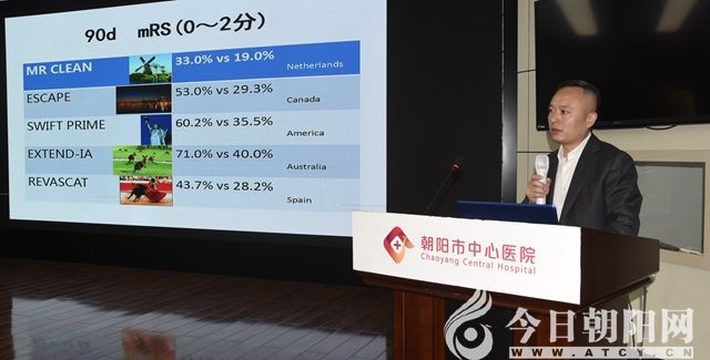 市中心醫(yī)院副院長樸立峰在講話中分享了卒中中心的建設(shè)和發(fā)展情況。2017年10月,醫(yī)院組建了由神經(jīng)內(nèi)科、急診科、神經(jīng)外科、神經(jīng)介入科、神經(jīng)影像科、超聲科、檢驗科、康復(fù)科、疾控科構(gòu)成的卒中中心,并于2018年12月由國家腦防委正式授牌為“國家高級卒中中心”。中心主要圍繞靜脈溶栓、動脈取栓、動脈瘤栓塞、顱內(nèi)動脈支架植入、頸動脈內(nèi)膜剝脫、腦卒中篩查、腦卒中隨訪、腦卒中知識宣講八大方面展開工作。他表示,朝陽市卒中急救地圖的發(fā)布,將聯(lián)合全市具有急性腦卒中綜合救治能力的醫(yī)院,建立以患者為中心的區(qū)域一體化卒中救治網(wǎng)絡(luò),為朝陽340萬百姓提供健康保障,同時也使朝陽地區(qū)腦卒中防控、救治水平邁上一個新臺階。