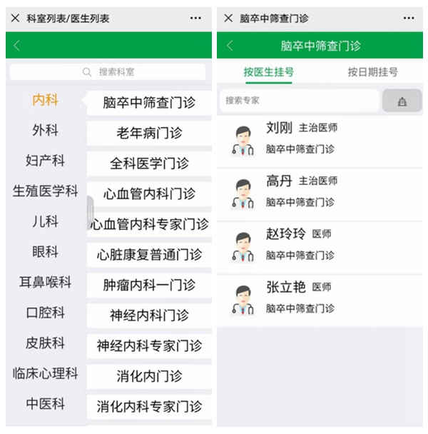 選擇就診科室或搜索科室名字,選擇醫(yī)生或選擇日期掛號(hào)。