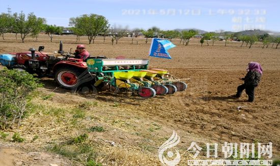 前幾天,我在龍城區(qū)七道泉子鎮(zhèn)新地村,看到一臺播種機正在田間作業(yè)。我和幾位婦女聊了一會,她們說,種地前,給合作社打電話約一下時間,排到自己家種地時,到地頭告訴一下自家地的地界就可以了。每畝地交220元錢,合作社把種子、肥料都準備好,技術(shù)人員開始作業(yè)。開溝撒種施肥填埋連續(xù)進行,播下的種子距離相等,填埋土層均勻。