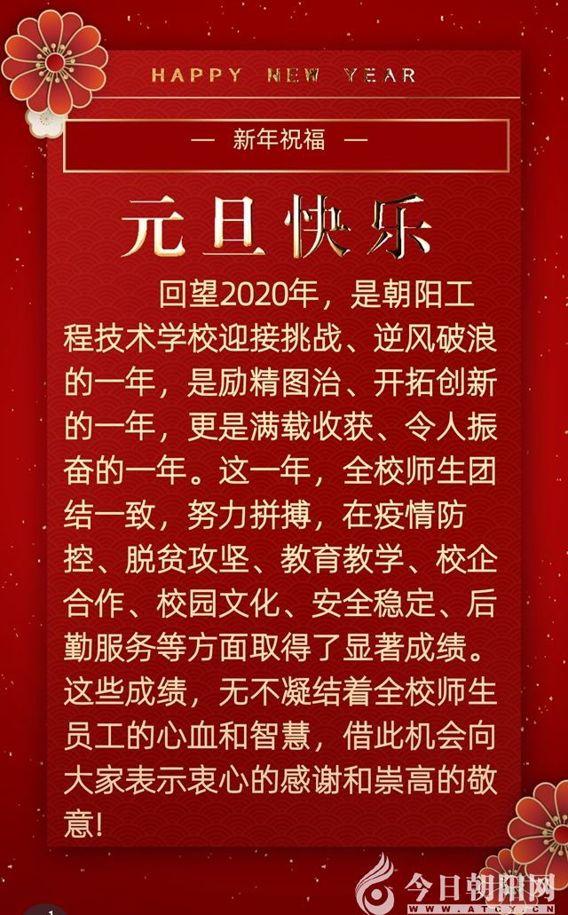 朝陽工程技術(shù)學(xué)校黨委書記、校長武鐵兵新年賀詞