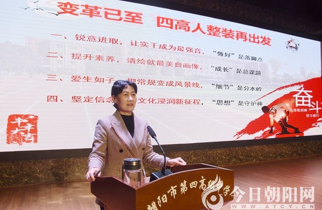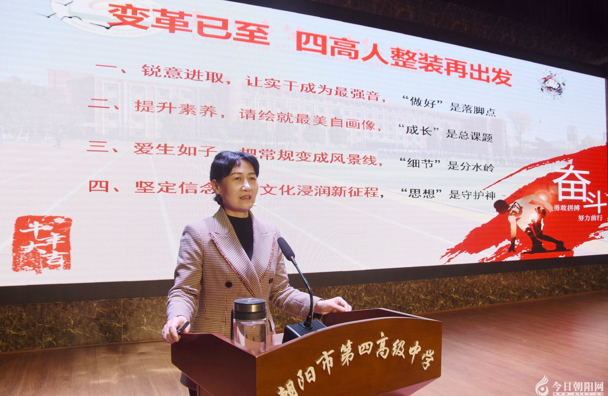 舊歲已展千重錦,新年再進(jìn)百尺桿。在新的歷史征途中,四高人正以同心同德、奮勇拼搏的精神,以銳意進(jìn)取、無私奉獻(xiàn)的干勁,爭做新時代“孺子牛、拓荒牛、老黃牛”的踐行者,為朝陽教育事業(yè)的發(fā)展貢獻(xiàn)智慧和力量。