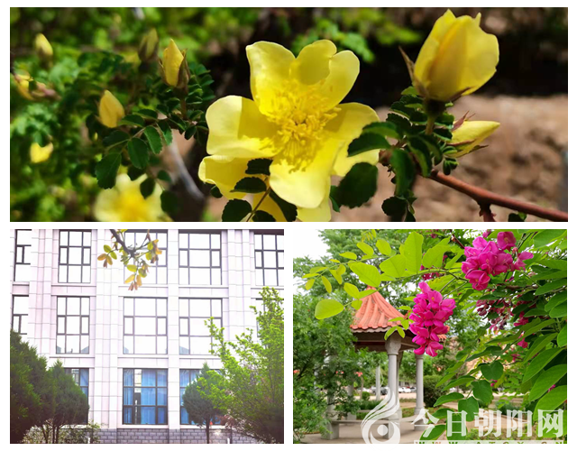 校園從春到秋繁花似錦,隨桃紅柳綠接踵而來的有數(shù)不勝數(shù)的花開花落,有金燦燦的迎春花,粉白玲瓏的杏花,素潔淡雅的梨花,紅艷妖嬈的櫻花,以及芬芳四溢的多色丁香,搖曳多姿的芍藥、牡丹,還有撒下清涼的綠藤和嬌艷耀眼的月季、薔薇,景天、薰衣草、五彩石竹、秋菊會依次盛開;春天萬木萌發(fā)的校園生機(jī)勃勃,有香濃馥郁的暴馬丁香,葉大蔭濃黃花滿枝的梓樹,夏天沉默香甜的老槐樹,紅粉如云的合歡樹,傲嬌挺拔的火炬樹,以及秋日絢麗多彩的楓林,冬日傲雪凌霜的松柏等等,讓花園式的校園充滿詩情畫意,喜鵲登枝,鳥鳴滴翠,歌聲、琴聲、讀書聲,聲聲入耳。