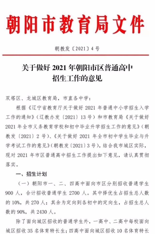 關(guān)注:2021年朝陽市區(qū)普通高中招生政策來了!