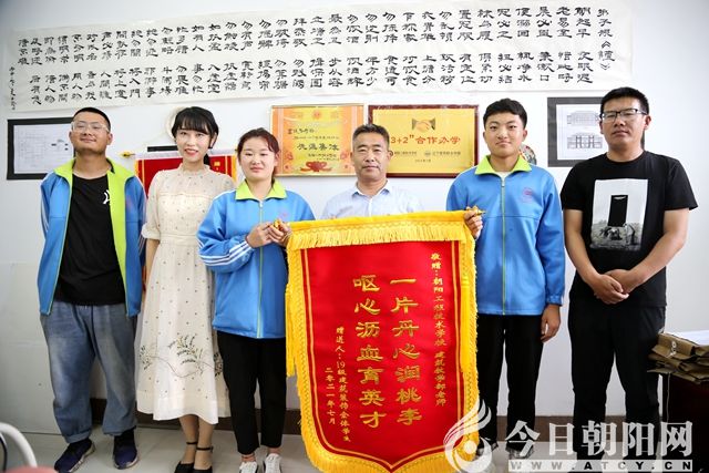 飲其流者懷其源,7月8日下午,遼寧省朝陽(yáng)工程技術(shù)學(xué)校19建裝學(xué)生滿懷感激之心,將寫有“惟宏隆德,情系教育”“一片丹心潤(rùn)桃李,嘔心瀝血育英才”等內(nèi)容的四面錦旗送給學(xué)校,以表達(dá)對(duì)母校對(duì)老師培育之情的真誠(chéng)感謝。副校長(zhǎng)劉文光代表學(xué)校接受了錦旗。