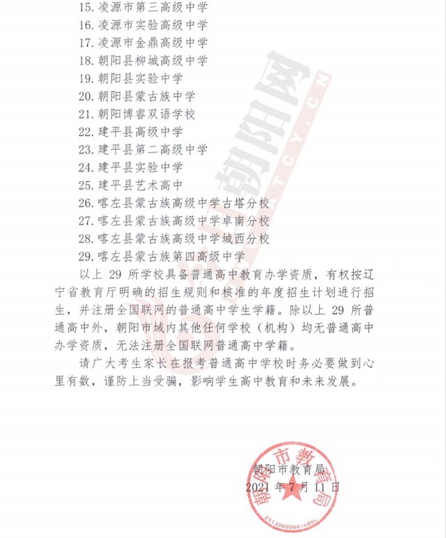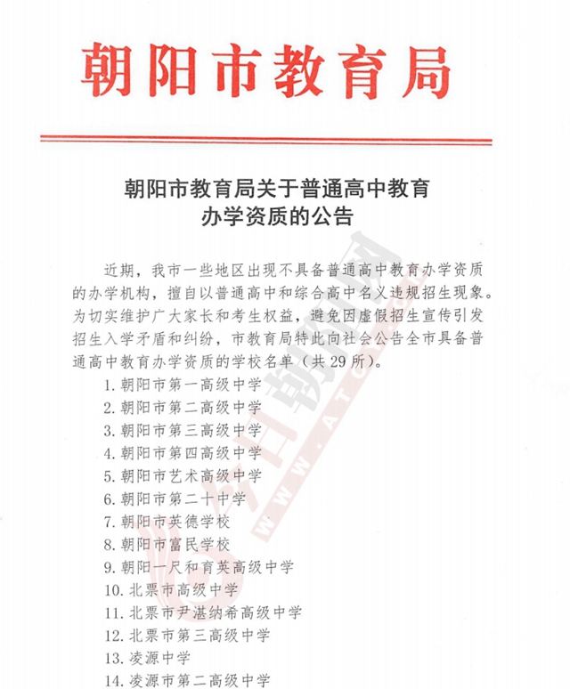 摘要:全市具備普通高中教育辦學資質的學校名單 剛剛,本網編輯從遼寧省朝陽市教育局獲悉,為切實維護廣大家長和考生權益,避免因虛假招生宣傳引發(fā)招生入學矛盾和糾紛,該局特向社會公告全市具備普通高中教育辦學資質的學校名單,共29所。詳情如下: 朝陽市教育局專屬園地 [編輯 立軍] 【本網聲明】