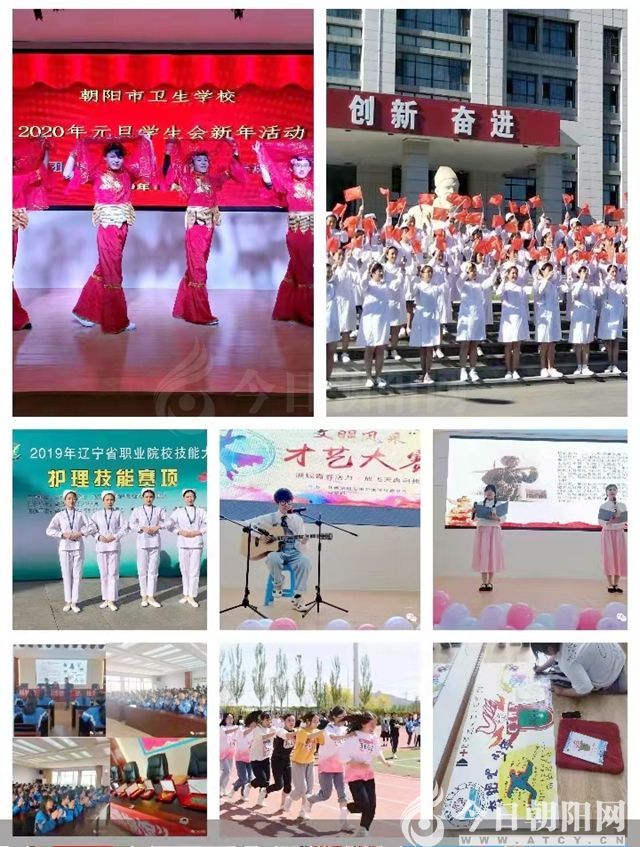 學(xué)?;顒?dòng)陣地齊全,活動(dòng)形式多姿多彩。班級(jí)設(shè)有板報(bào)、圖書角;校園設(shè)有展板和櫥窗;團(tuán)委開通“衛(wèi)校團(tuán)團(tuán)”公眾號(hào);同時(shí)發(fā)揮校園廣播站、校報(bào)等育人平臺(tái)的引領(lǐng)作用;積極拓展殘疾兒童中心、燕都長(zhǎng)壽敬老院、朝陽市博物館等多家教育基地;組織舞蹈隊(duì)、跆拳道隊(duì)、文學(xué)社、攝影之家等大力開展社團(tuán)活動(dòng)。真正做到板報(bào)櫥窗出新意、廣播校報(bào)引方向、網(wǎng)絡(luò)平臺(tái)成常態(tài)、活動(dòng)場(chǎng)所廣拓展的陣地建設(shè)特色,陶冶了學(xué)生情操、美化了學(xué)生心靈、啟迪了學(xué)生智慧。