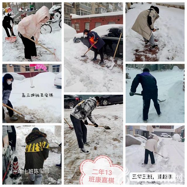 三高中的教師們也在積極清掃著校園內(nèi)的積雪,為上課做好準(zhǔn)備