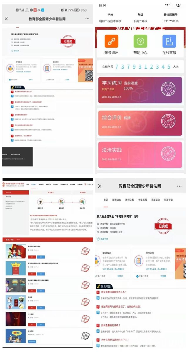 參加第六屆全國學(xué)生“學(xué)憲法講憲法”網(wǎng)上學(xué)習(xí)行動。通過教育部全國青少年普法網(wǎng)在線學(xué)習(xí)憲法知識,學(xué)生進一步學(xué)習(xí)了憲法的基本原則和基本知識,增強了法律意識和自我保護意識。同時也鼓勵學(xué)生爭當“憲法小衛(wèi)士”,增強教育的生動性、參與性、實踐性。