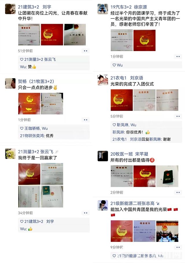 儀式結束后,新團員們懷著激動的心情,紛紛轉發(fā)朋友圈,表示要牢記自己的使命與目標、牢記共青團員的責任與義務,以崇高理想、務實精神,書寫新時代共青團員的新篇章。