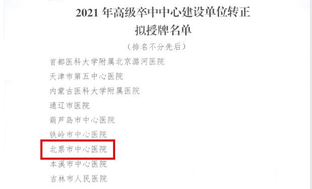 4月26日,國家衛(wèi)健委腦防委印發(fā)了《關于擬授予首都醫(yī)科大學附屬北京潞河醫(yī)院等單位為高級卒中中心的通知》文件,遼寧省北票市中心醫(yī)院榜上有名,正式成為國家“高級卒中中心”單位,標志著該院卒中救治能力已經(jīng)達到了國家級水平。值得一提的是,該院也是全國第一家縣級醫(yī)院的高級卒中中心。