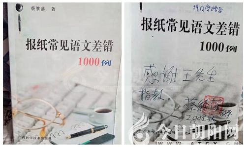 蔡先生寫作《報紙常見語文差錯1000例》時,曾問過我一些問題,沒想到先生在后記中特意向我致謝。書還在,人已去,撫今追昔,不禁熱淚潸然。