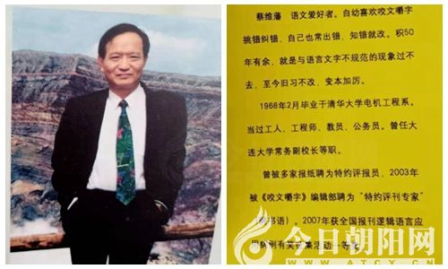 蔡先生1968年畢業(yè)于清華大學機電工程系。當過工人、工程師、教員、公務員。曾任大連大學常務副校長等職。自幼喜歡咬文嚼字挑錯糾錯,癡心不改,老而彌堅。