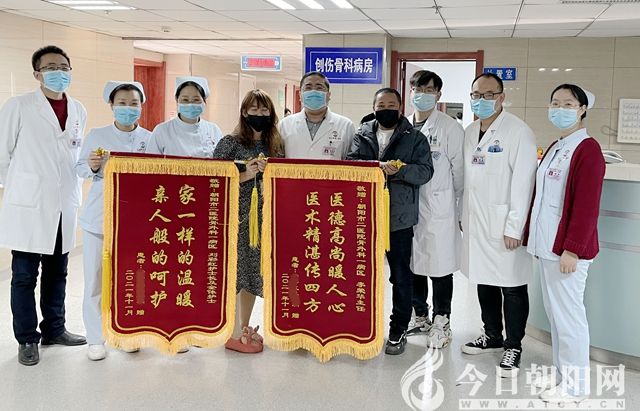 11月初,市二院創(chuàng)傷骨科收治了一名冒雪前來就診的外地患者。該患者因車禍傷導(dǎo)致骨盆骨折、骶骨粉碎性骨折、骶神經(jīng)受損,當(dāng)?shù)蒯t(yī)院因手術(shù)難度大建議其轉(zhuǎn)診二院治療,如果不盡快手術(shù),可能造成患者骶神經(jīng)損傷進(jìn)一步加重或無法恢復(fù),甚至留下終身殘疾?;颊邅淼蕉簳r,已伴有失血性休克,生命體征極不穩(wěn)定,情況十分危急。盡管手術(shù)難度大、風(fēng)險高,但作為醫(yī)生,只要有一線希望,都要努力搏一搏,經(jīng)過充分的術(shù)前討論及準(zhǔn)備,李榮華及其團(tuán)隊(duì)決定為患者實(shí)施骨盆及骶骨骨折微創(chuàng)手術(shù)。憑著精湛的手術(shù)技術(shù)和密切配合,手術(shù)順利進(jìn)行,術(shù)中出血不到10毫升,且術(shù)中術(shù)后均未輸血。術(shù)后,患者骶神經(jīng)損傷表現(xiàn)明顯緩解,骨折處翻身活動時疼痛感減輕。為了表達(dá)感激之情,患者家屬特意為醫(yī)護(hù)人員送來了兩面錦旗,感謝他們用精湛的醫(yī)術(shù)和高尚的醫(yī)德讓親人擺脫痛苦。