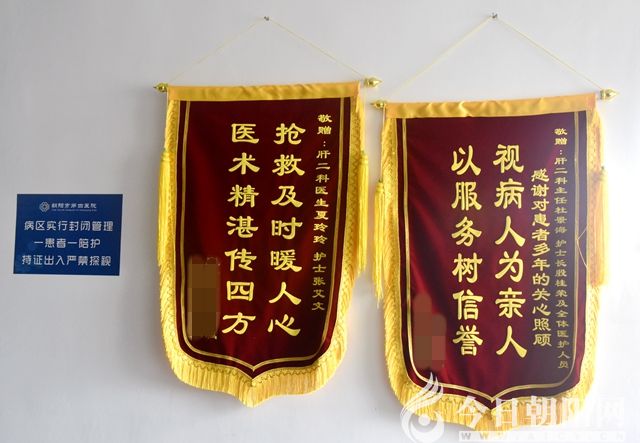 “視病人為親人,以服務(wù)樹信譽”“搶救及時暖人心,醫(yī)術(shù)精湛傳四方”。近日,遼寧省朝陽市第四醫(yī)院肝病二科收到了患者劉某某家屬送來的兩面錦旗,感謝科室全體醫(yī)護人員多年來對患者的全力救治與精心照顧。