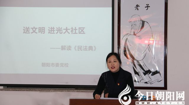 11月30日上午,遼寧省朝陽市雙塔區(qū)龍山街道光大社區(qū)黨總支、國家稅務(wù)總局朝陽市稅務(wù)局第七黨支部、朝陽市委黨?;鶎狱h支部聯(lián)合舉辦了“送文明進社區(qū)——解讀《民法典》”講座。光大社區(qū)、朝陽市稅務(wù)局、市委黨校相關(guān)同志一起聆聽了講座,共同學習體悟了《民法典》對全面加強法治社會建設(shè)的重大意義。