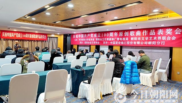 12月31日,由中共朝陽市委宣傳部、朝陽市文化旅游和廣播電視局、朝陽市文學(xué)藝術(shù)界聯(lián)合會(huì)主辦,朝陽市音樂家協(xié)會(huì)承辦,中國建設(shè)銀行股份有限公司朝陽分行協(xié)辦的慶祝中國共產(chǎn)黨成立100周年原創(chuàng)歌曲作品表獎(jiǎng)會(huì)在燕都國際酒店舉行。市委宣傳部、市文旅廣電局、市文聯(lián)、市音協(xié)有關(guān)領(lǐng)導(dǎo)及部分獲獎(jiǎng)詞曲作家、音樂人參加了會(huì)議。會(huì)議由市音協(xié)副主席兼秘書長姜姿羽主持。